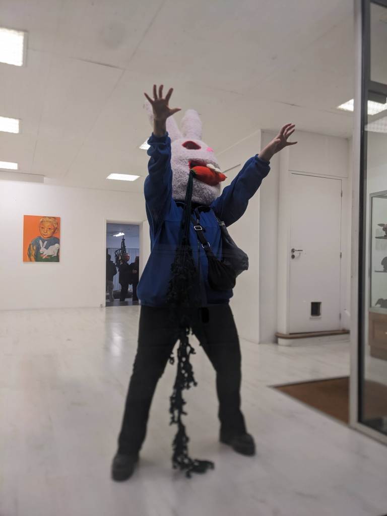 L’exposition présente un ensemble peintures et de dessins récents ainsi que des installations textiles réalisées pour l’occasion, le tout articulé autour de la figure du lapin, un animal porteur de nombreuses symboliques antagonistes.