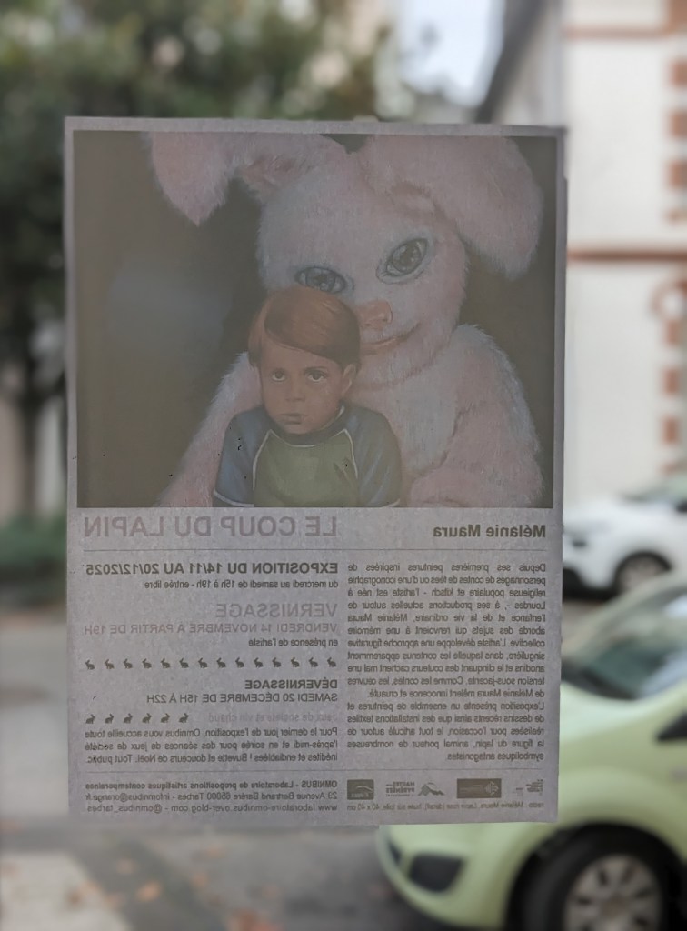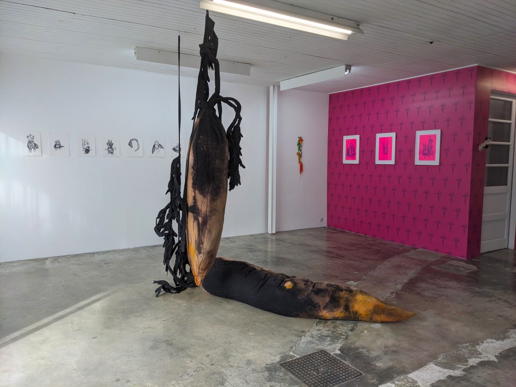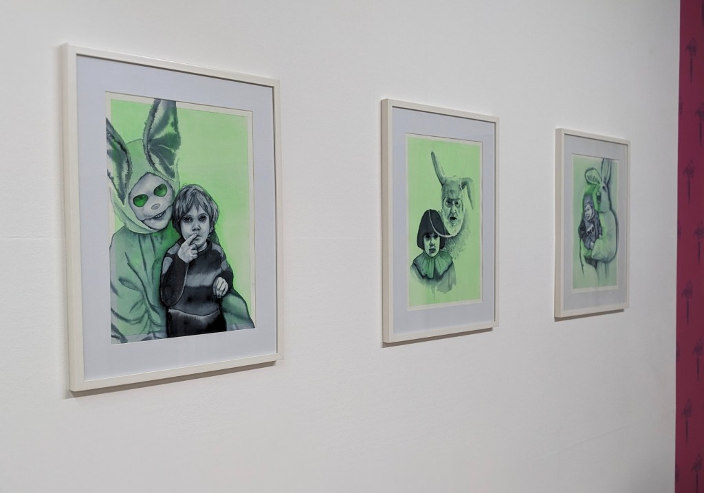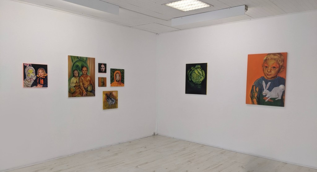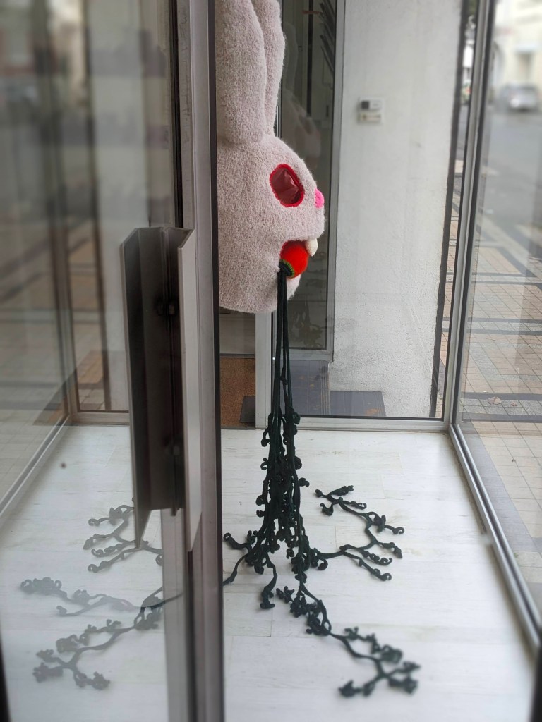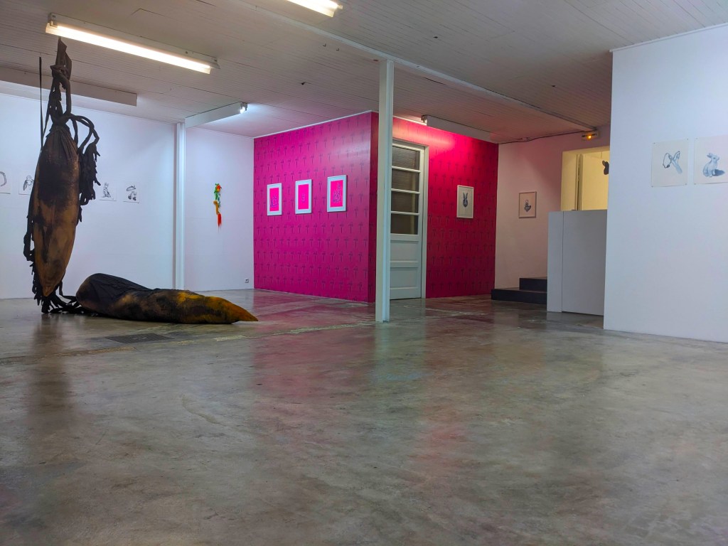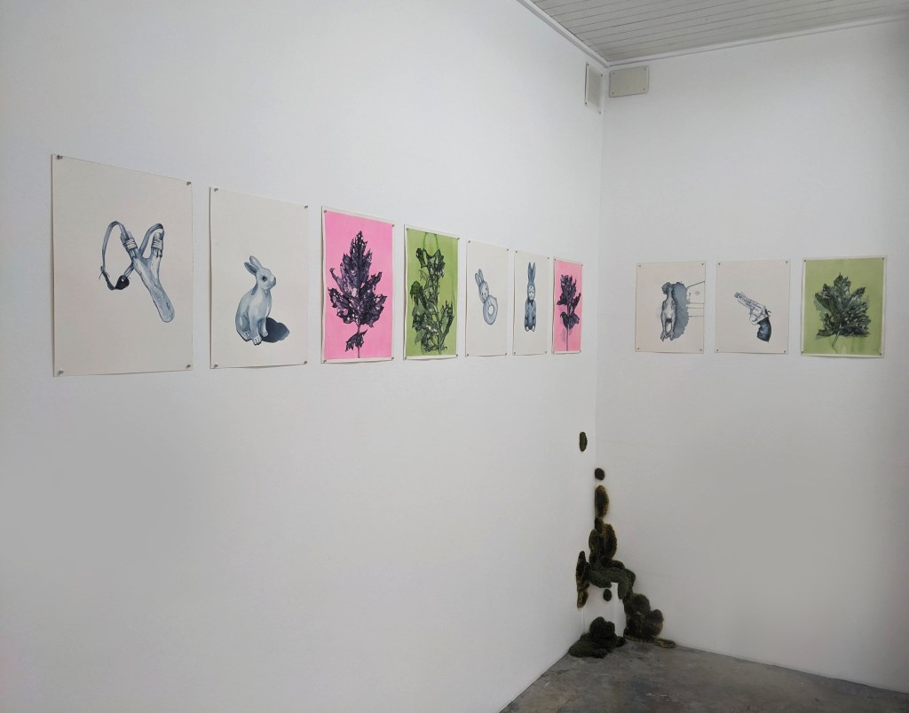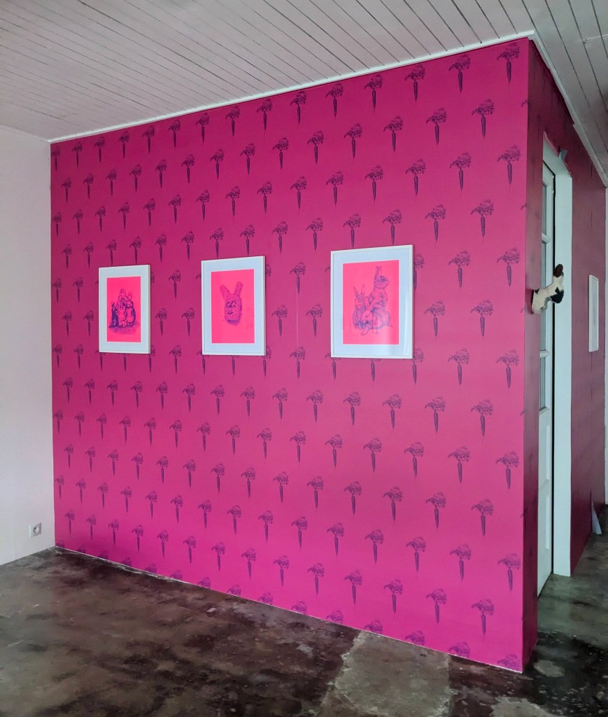 L’exposition présente un ensemble peintures et de dessins récents ainsi que des installations textiles réalisées pour l’occasion, le tout articulé autour de la figure du lapin, un animal porteur de nombreuses symboliques antagonistes.